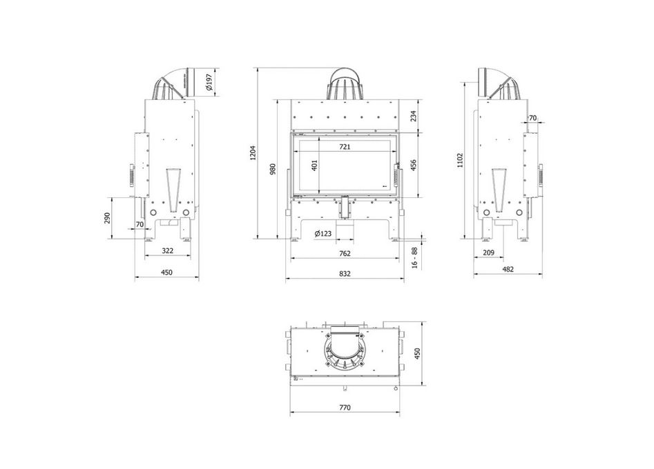 Extrase:Deflector pentru extinderea traseului fumului si imbunatatirea schimbului termic , Cenusar pentru o curatare facila , Picioare reglabile pentru ajustare, pozitionare si fixare optima , Necesita conectarea aerului de admisie extern