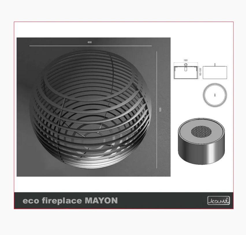 Șemineul Mayon pe biocombustibil are o formă originală și spațioasă. Designul său modern și oțelul rafinat îl completează perfect pentru un interior sobru și culorile calde ale pereților, decorului și elementelor decorative, creând totodată o atmosferă caldă în grădină sau pe terasă.