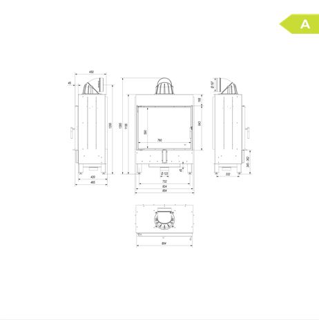 Sistem de tripla combustie a focarului: arderea primara directionata pe partea frontala a vatrei; arderea secundara se face tot cu aer proaspat adus prin ajutorul orificiilor amplasate pe peretele din spate a camerei de ardere. In plus a fost aplicat sistemul de curatare a sticlei cu aer proaspat din exterior preincalzit (perdea de aer).