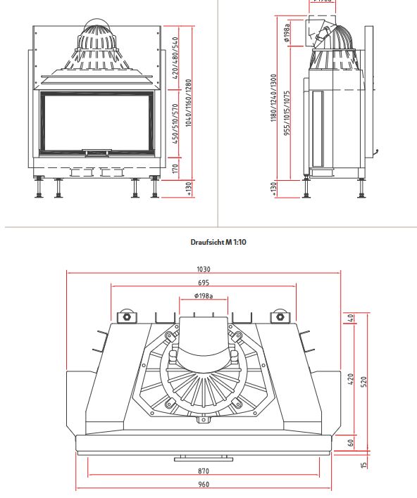 Inserție de șemineu deschisă pe o parte