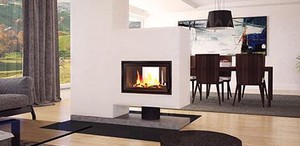 Acesta plasează focul în spatele unui panou panoramic semicircular sau în spatele panourilor puriste cu un design plat.