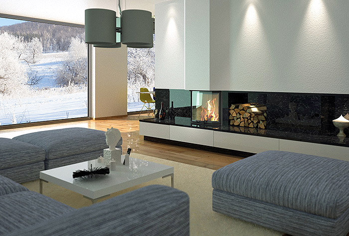 Dotari standard pentru focar Schmid Pano 67x45x57: rama geam antracit, conexiune aer combustie din exterior, interior de samota, usa autoinchidere