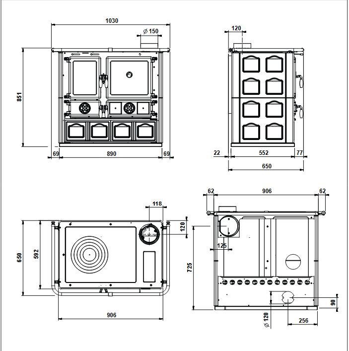 • Diametru evacuare fum: Ø 150 mm (S/P)